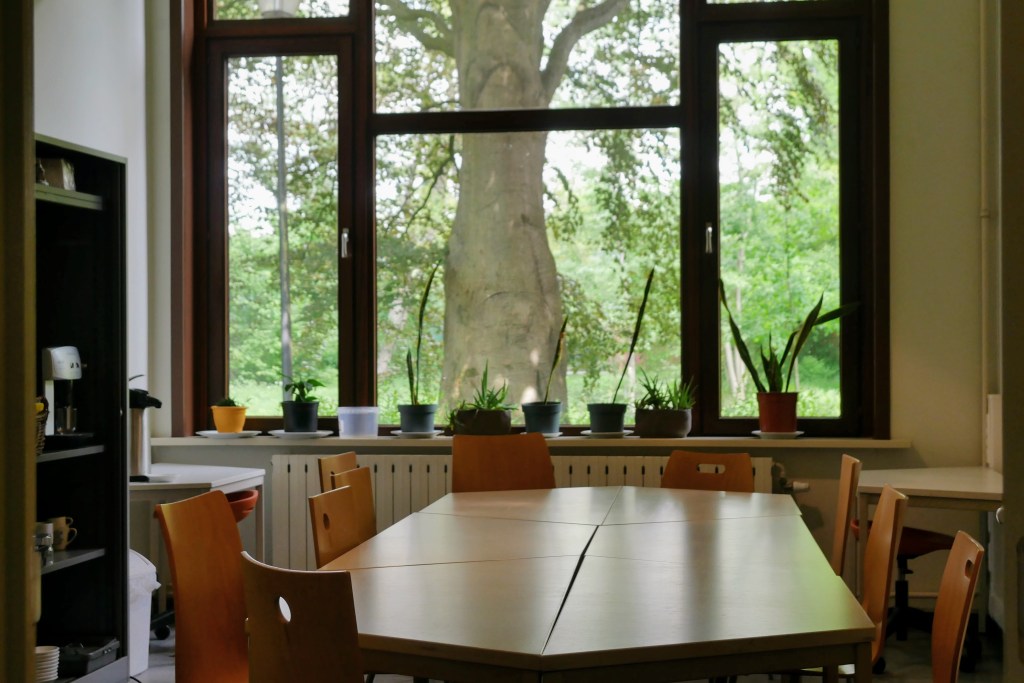 Een rustige, gedeelde werkplek voor wie nood heeft aan focus of samenwerking. Inclusief gratis wifi, koffie aan een solidaire prijs en een inspirerende omgeving.