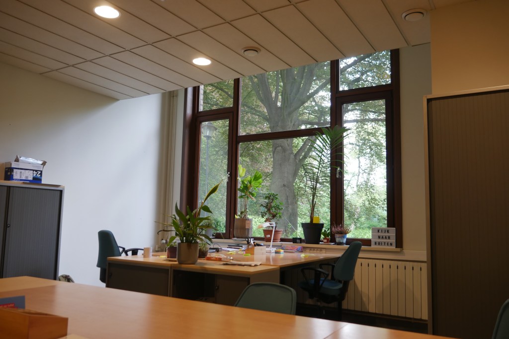 Een gezellige vergaderruimte voor groepen tot 14 personen. Geschikt voor overleg, workshops of groepsgesprekken. Voorzien van een tv-scherm, koffie en voldoende licht.